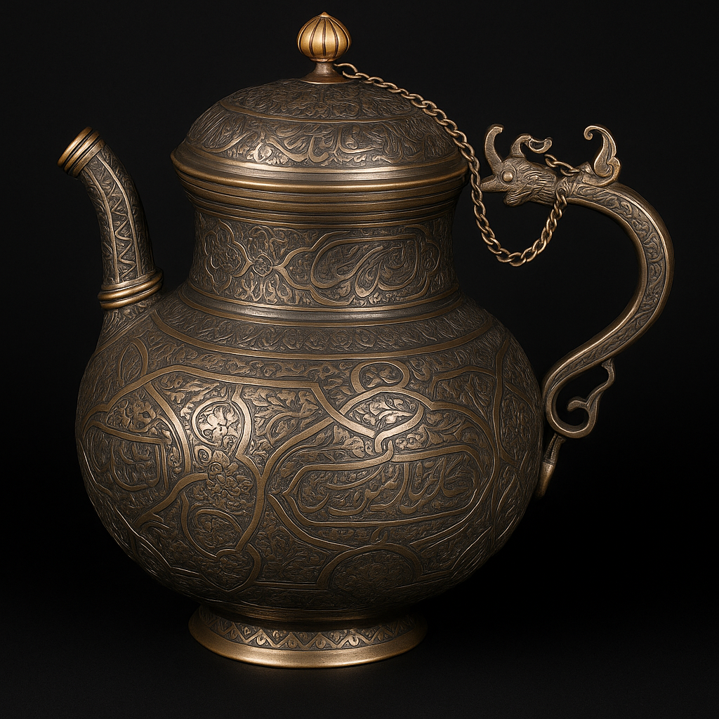 The intricate engravings on the Eternal Heirloom are inspired by Ghalamzani — a centuries-old tradition of hand-carving elaborate motifs into metal. This art form has been cherished across Persia, India, and the Middle East, where it once adorned palace gates, ceremonial chests, royal jewellery, and sacred objects. Blending arabesque scrolls with delicate floral patterns, it creates a rhythm and grace that feels both timeless and alive. Each line is cut by hand with a chisel, a process requiring not only precision but a meditative patience passed down through generations of master craftsmen.